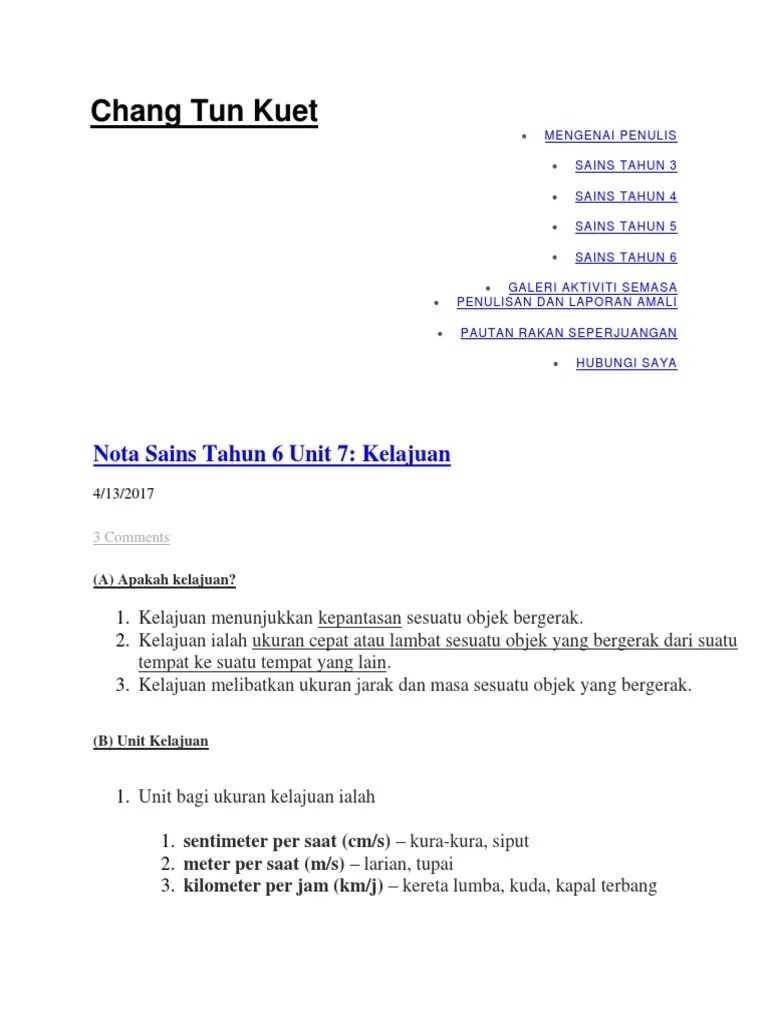 Unit bagi ukuran kelajuan ialah. Kelajuan melibatkan ukuran jarak dan masa sesuatu objek yang bergerak. Nota sains tahun 6 unit 7 : Knot adalah ukuran kelajuan batu nautika sejam.